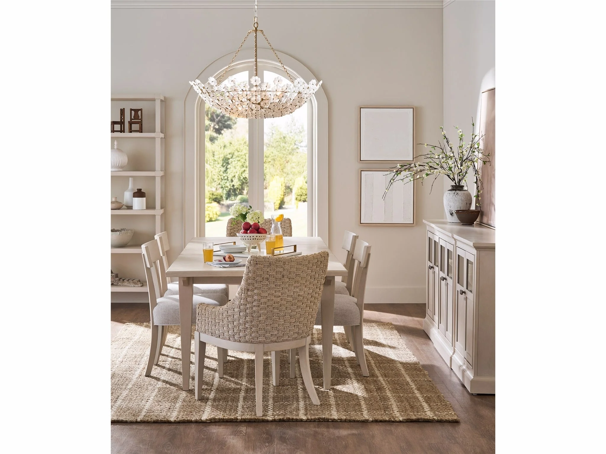 The Birchaven Transitional Rectangular Dining Table with Leaf Extension, made by Universal,