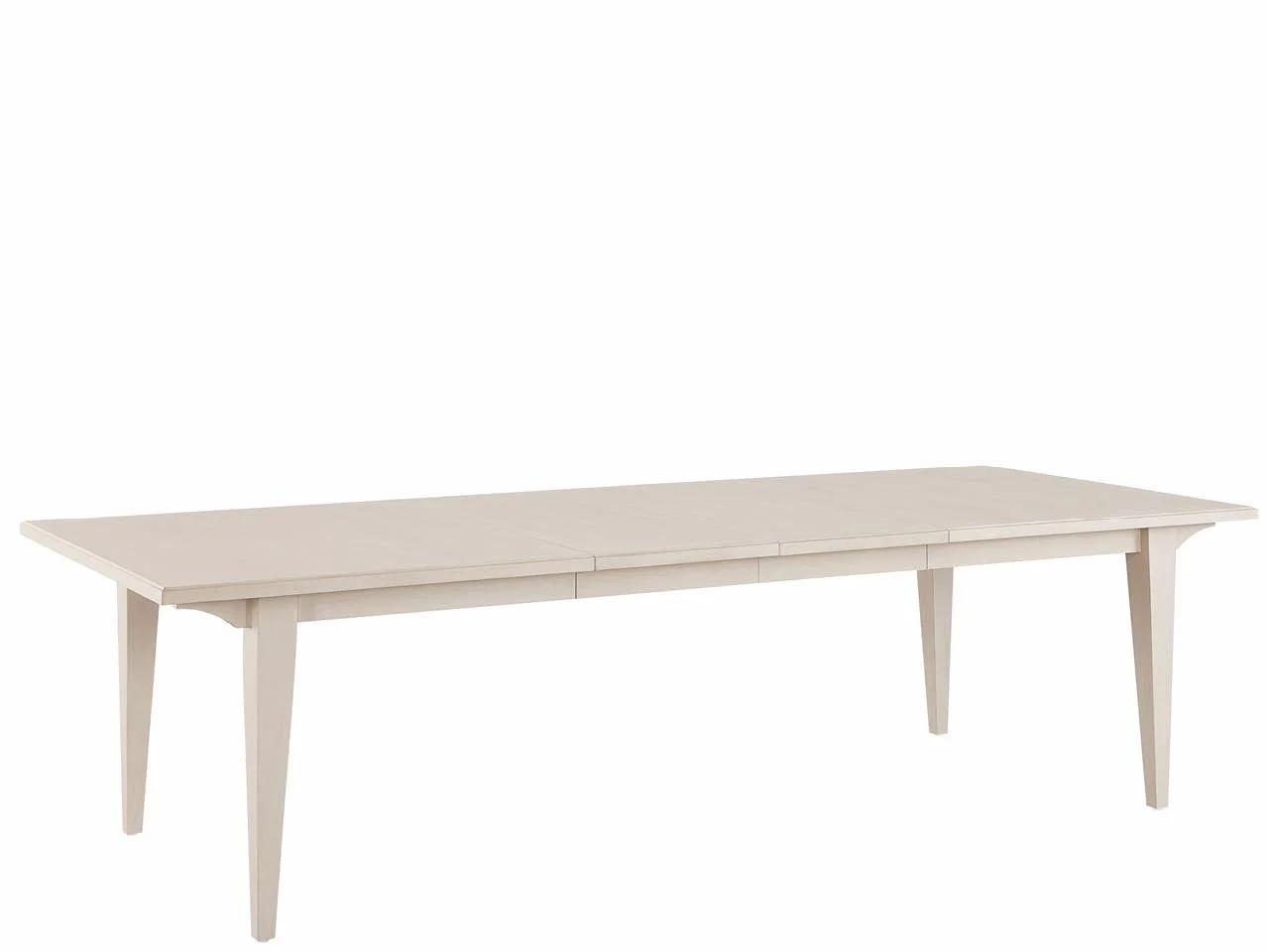 moreThe Willow Dining Table features a refined rectangular design that beautifully highlights the fine wood grain of the Willow finish. Complete with two 18" extension leaves, this substantial piece extends to a full 110" to accommodate your largest, most sophisticated gatherings.