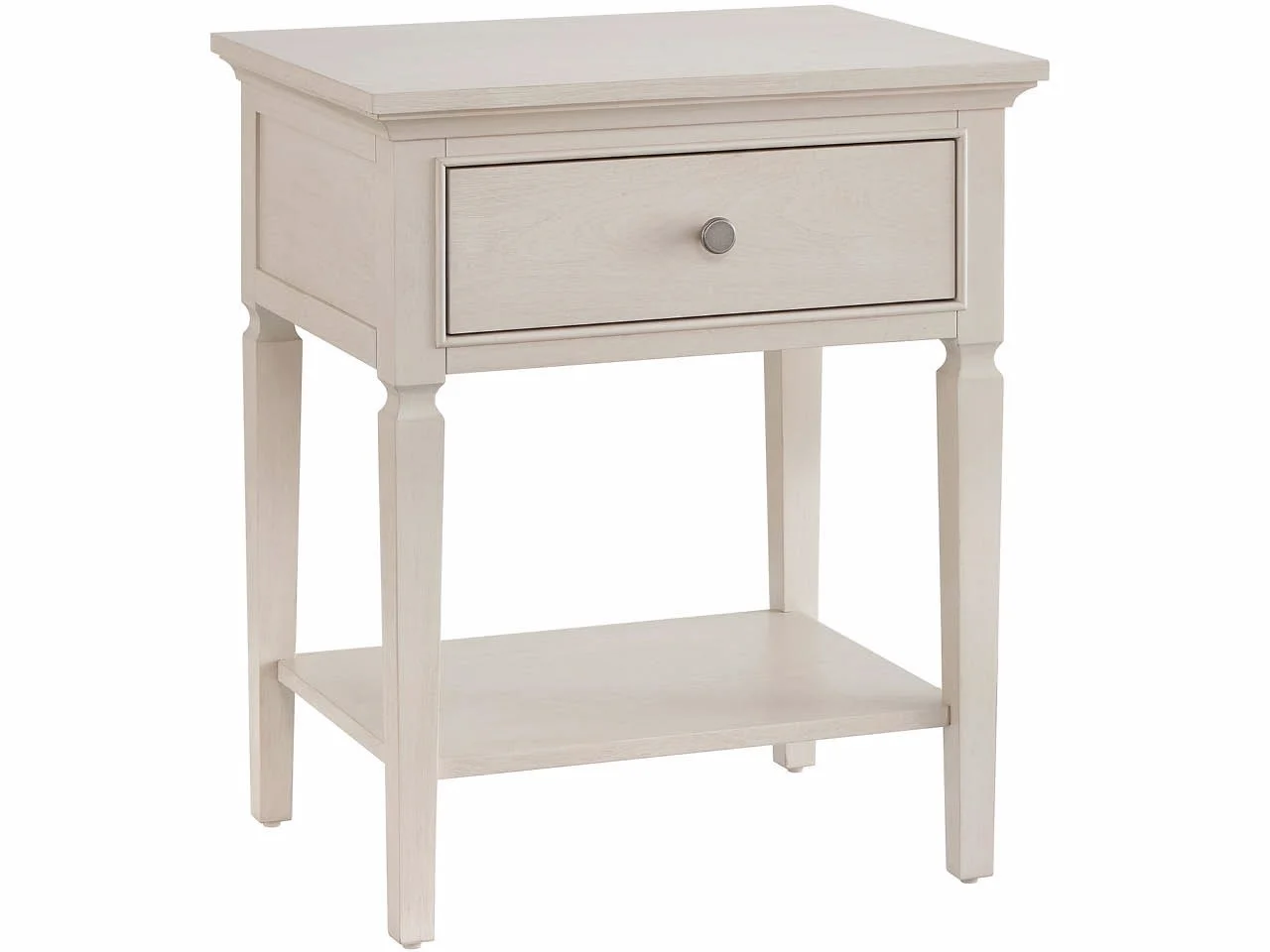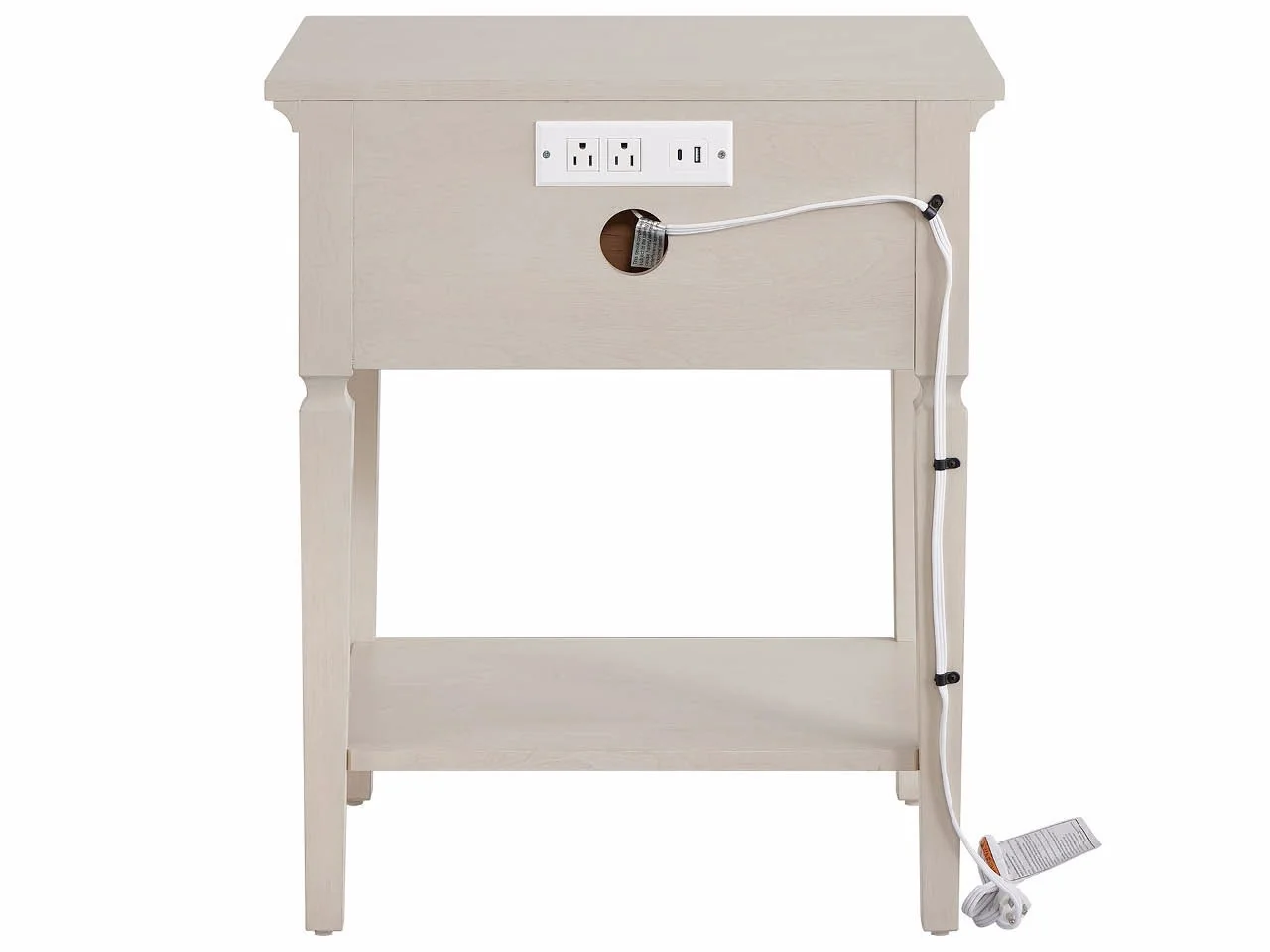 The Birchaven Transitional Single Drawer Nightstand with Charging Station, made by Universal,