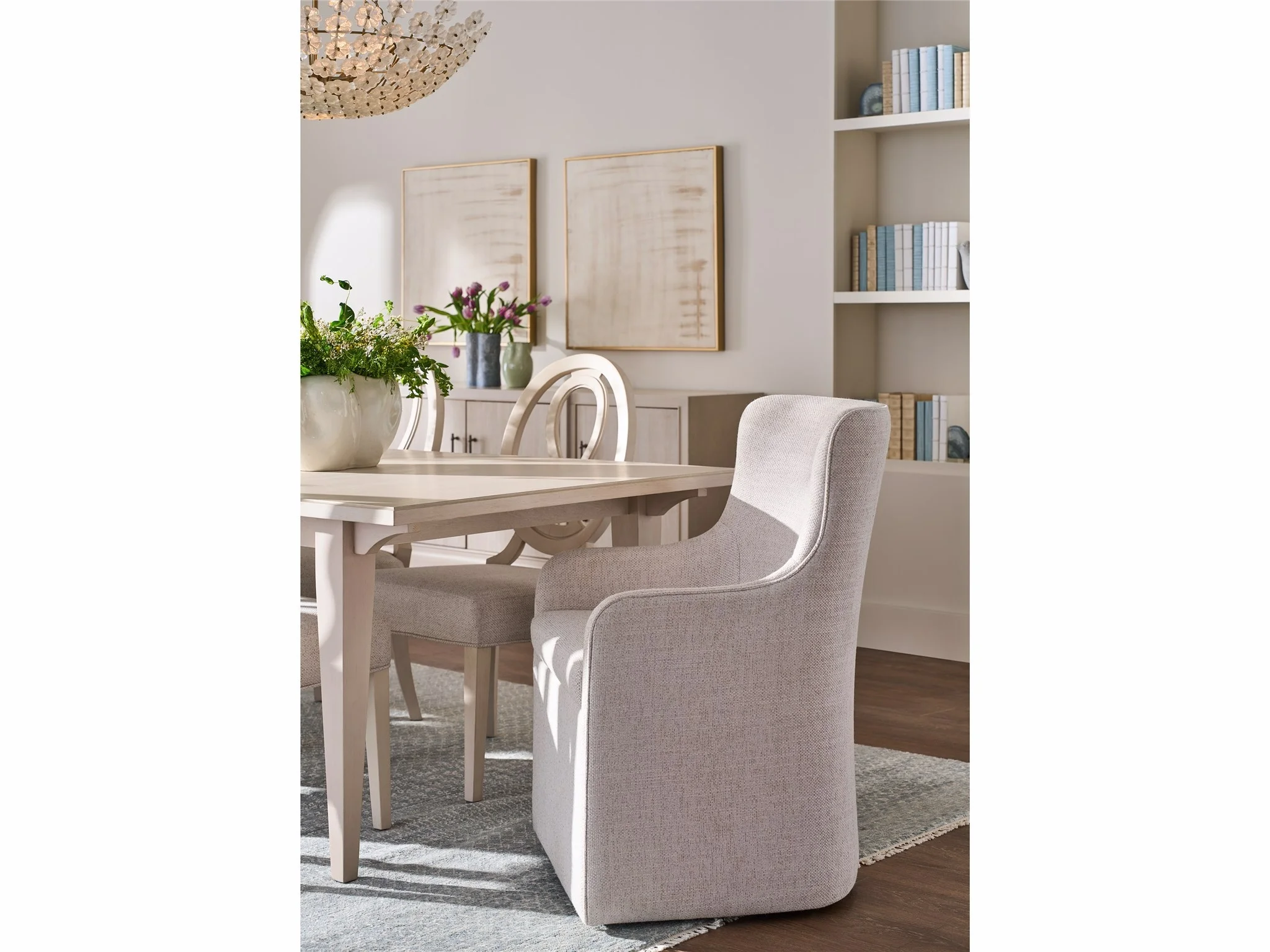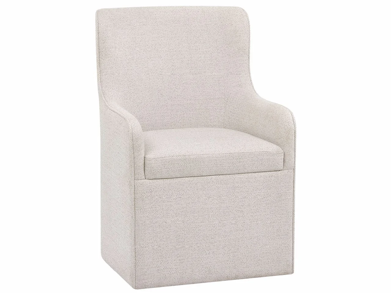 moreThe Birchaven Arm Chair is a fully tailored and luxurious dining seat, upholstered entirely in the handsome and durable Bilma Natural fabric. Fitted with discreet casters, this sophisticated piece can be easily repositioned, blending elegance with effortless utility.