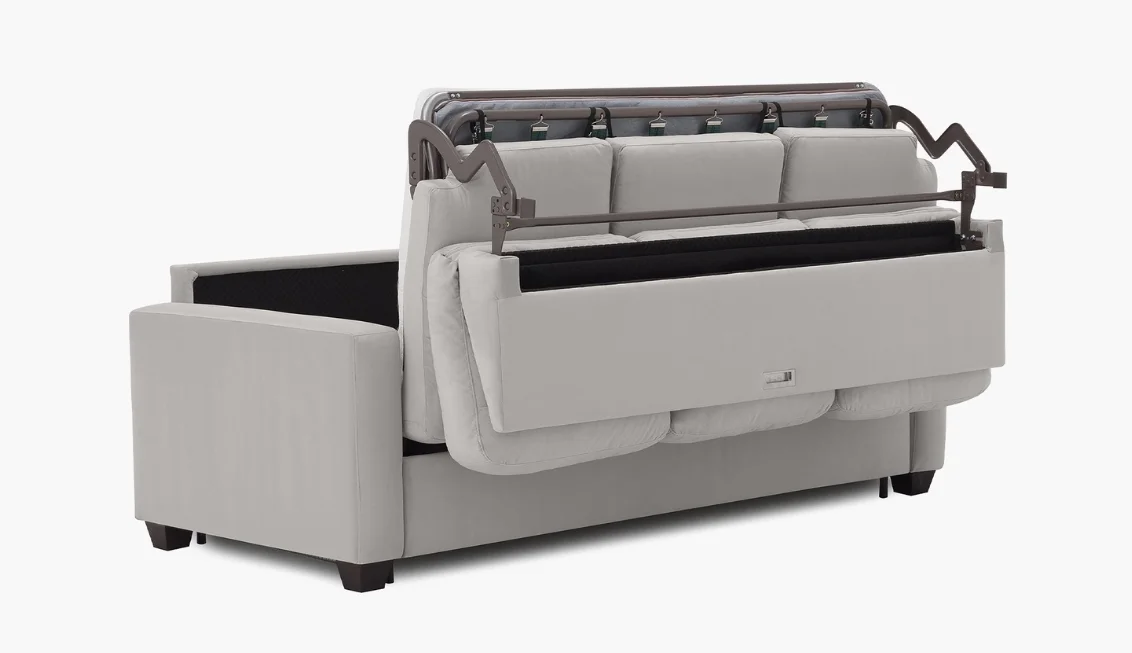 Beneath its cozy seat cushions is a comfortable mattress topped with memory foam, accessible via the easyopen mechanism.